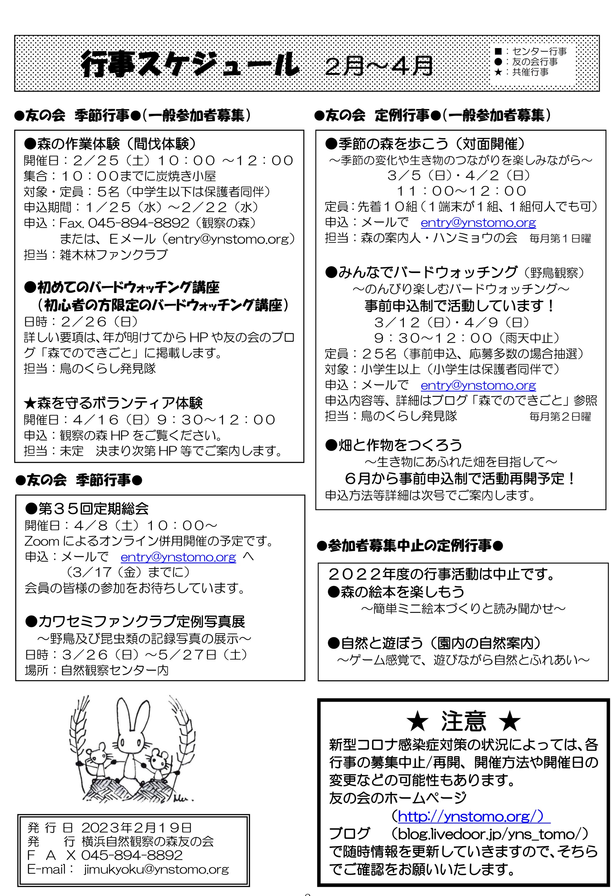 活動は、5月~12月の第2土曜日10~12時です。冬は、木の葉が落ちて日の光が林の中に差し込むため、その光に、カメラが間違えて反応してしまうので、定点カメラの設置ができません。カメラも活動も、しばし休憩です。5月になったらまた再開します。来年度は、新しくなったセンターでの写真展も企画中です!(担当:事務局)